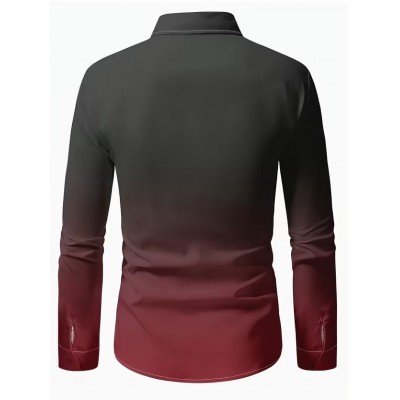 European and American Men's Plus Size Fashion Casual Geometric Print Business Style Button- Collar Long Sleeve Shirt, PLUS SIZE Sold by yuxi Superior Products