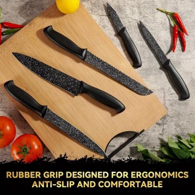 покрытие > məişət texnikası > 6pcs, Kitchen Knife Set with No Drilling Magnetic Strip for Kitchen Black Titanium Small Cooking Knives, Sharp Stainless Steel Chef Knife Set for Cutting Meat & Vegetable