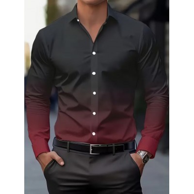 European and American Men's Plus Size Fashion Casual Geometric Print Business Style Button- Collar Long Sleeve Shirt, PLUS SIZE Sold by yuxi Superior Products